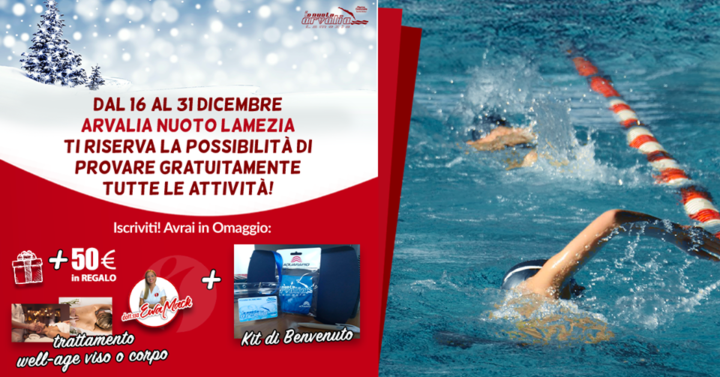Dal 16 al 31 dicembre prova gratuitamente tutte le attività proposte dalla Arvalia Nuoto Lamezia! Per te in regalo…